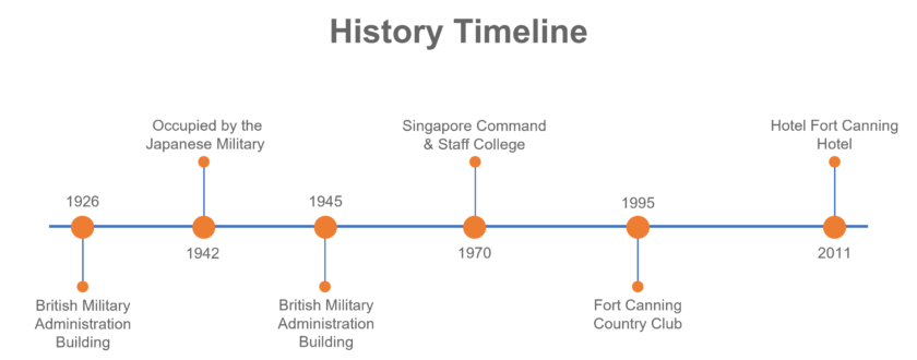 Hotel Fort Canning is a luxurious award-winning urban hotel. It represents one of the colonial scenes of Singaporean history. It is part of 18 hectares in Fort Canning Park. Historically, in the early 20th century, this hotel was the British military administration office of the British Far East Command HQ. Figure 1 shows the different usages of the building through time, from military offices, then a training institute for the Singapore Armed Forces, a club, and finally to a fabulous hotel.