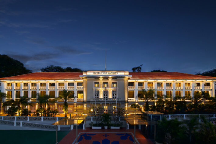 In 2011, the building was re-opened as Hotel Fort Canning. The restoration of the hotel was done by the award-winning DP Architects. In terms of sustainability, it is a transformation that respects and conserves the heritage of the building and its site. Externally, the lighting in the exterior façade emphasises the original horizontal and vertical elements (Figure 2), giving it a magnificent feeling.